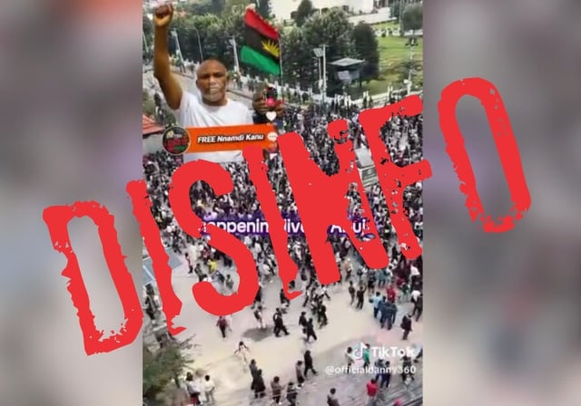 A viral video on TikTok has attributed a large crowd of protesters to Nigerians demanding the release of Nnamdi Kanu, detained leader of the Indigenous People of Biafra (IPOB), in Abuja.