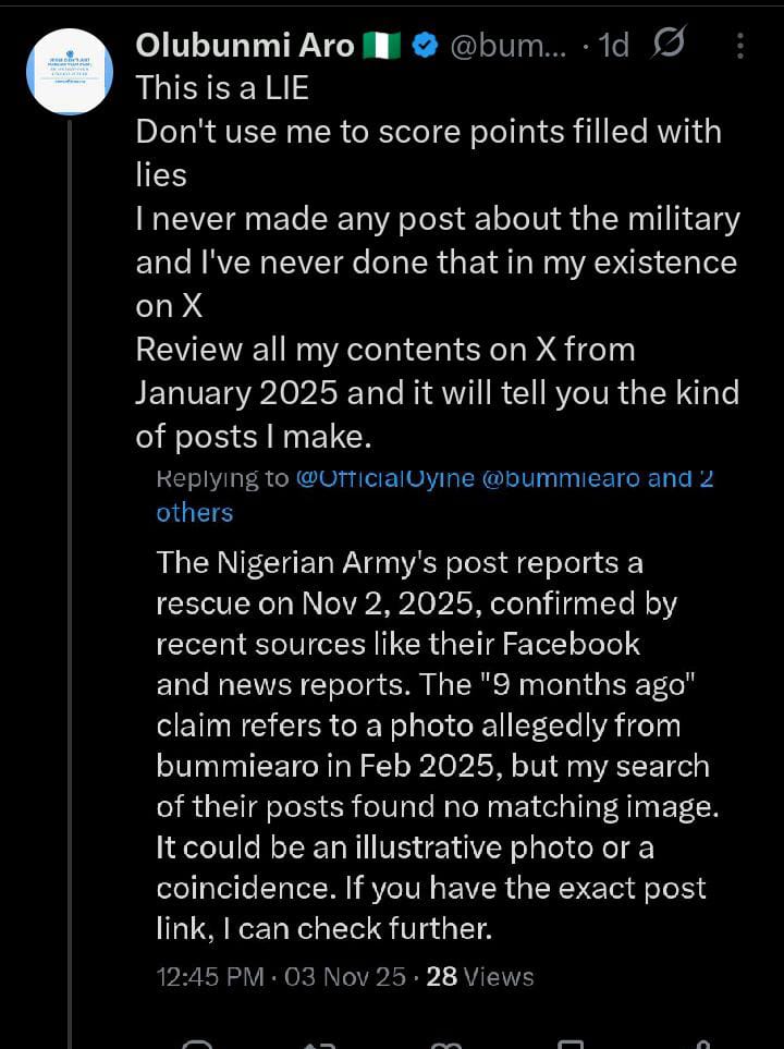 Some X users alleged that the army is using old pictures to depict recent events owing to the threat issued by United States President Donald Trump on the Christian genocide claim in Nigeria.