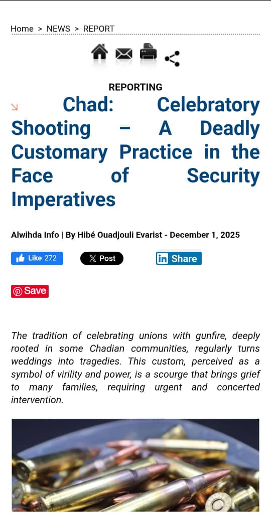 In the article, the author lamented that the tradition of celebrating weddings in Chadian communities with gunshots has regularly turned into tragedies.