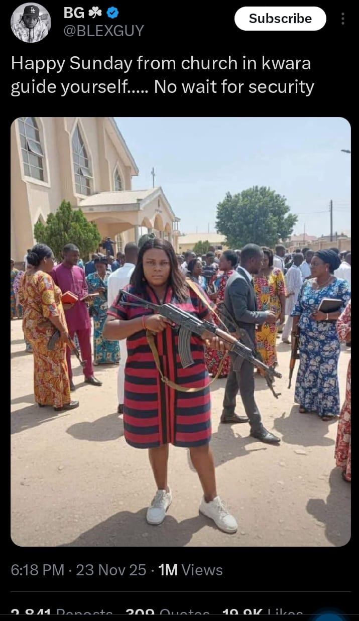 On November 23, a X user with the handle @BLEXGUY posted the viral image with the caption: “Happy Sunday from church in kwara guide yourself….. No wait for security”.