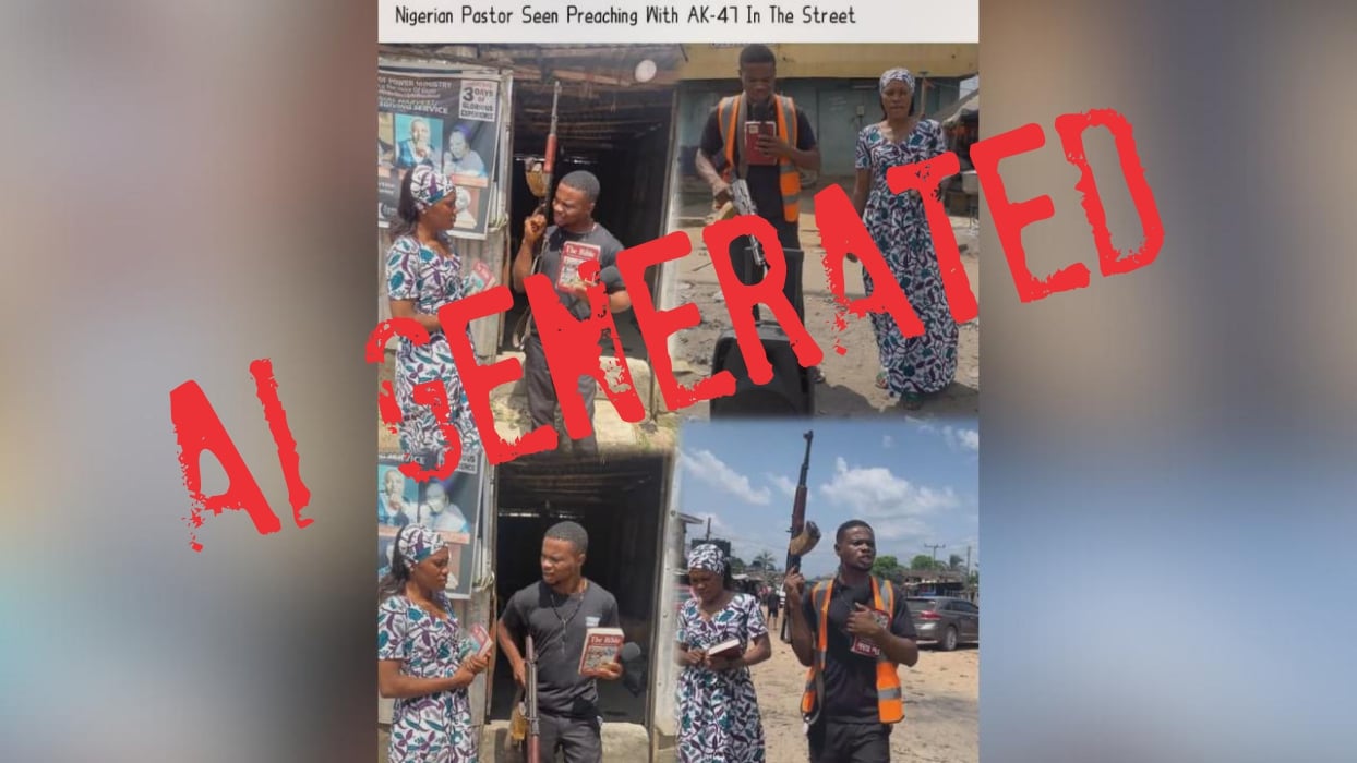 The picture was captioned: “Nigerian Pastor Seen Preaching With AK-47 In The Street”.